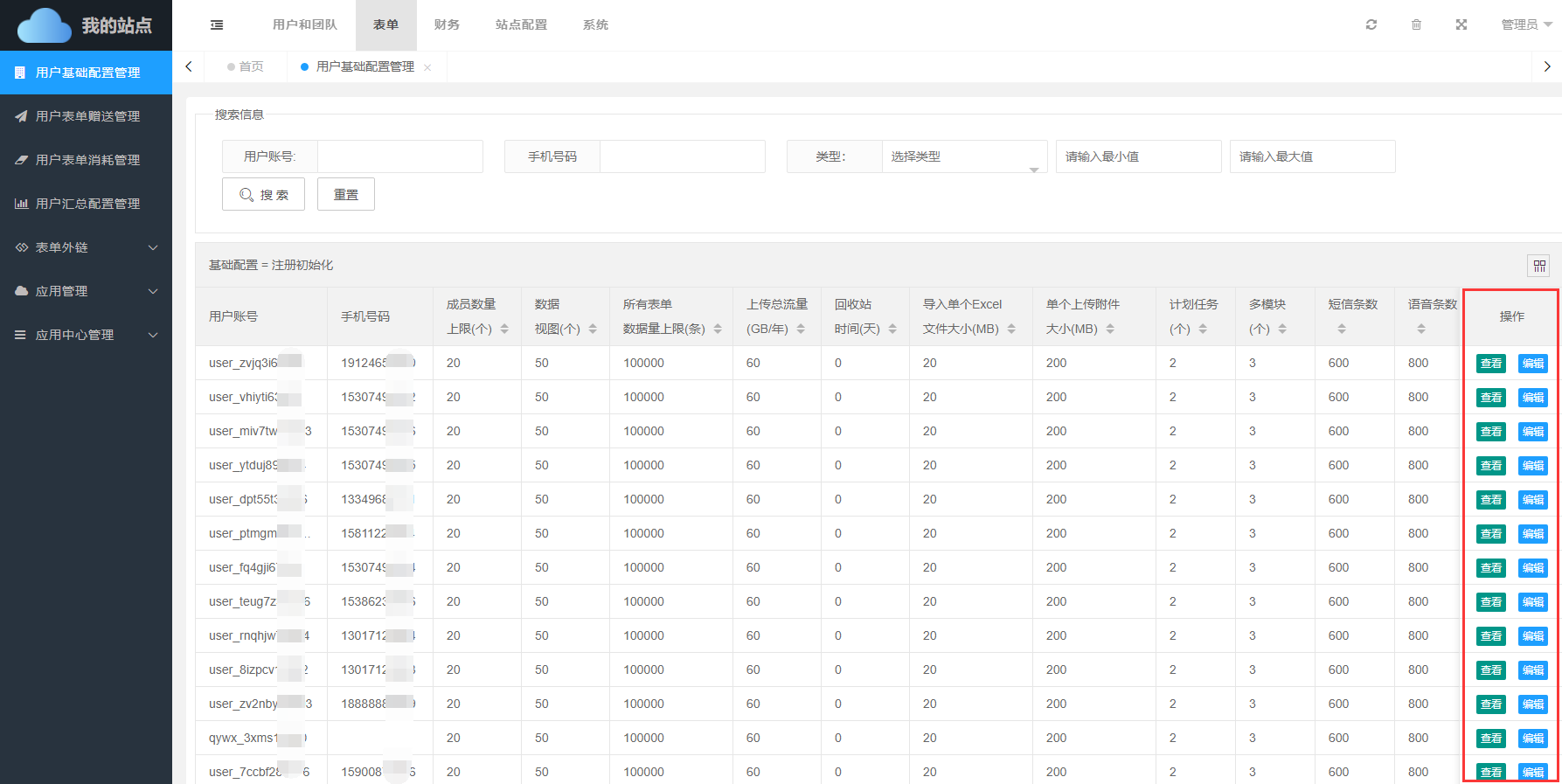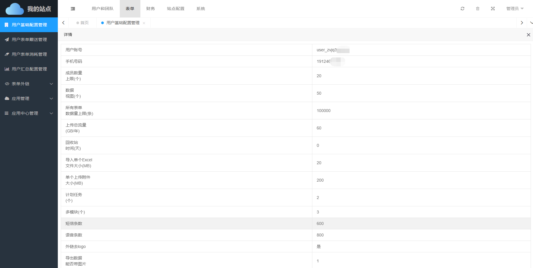 • 所有表单数据量上限(条):可提交表单数据总条数