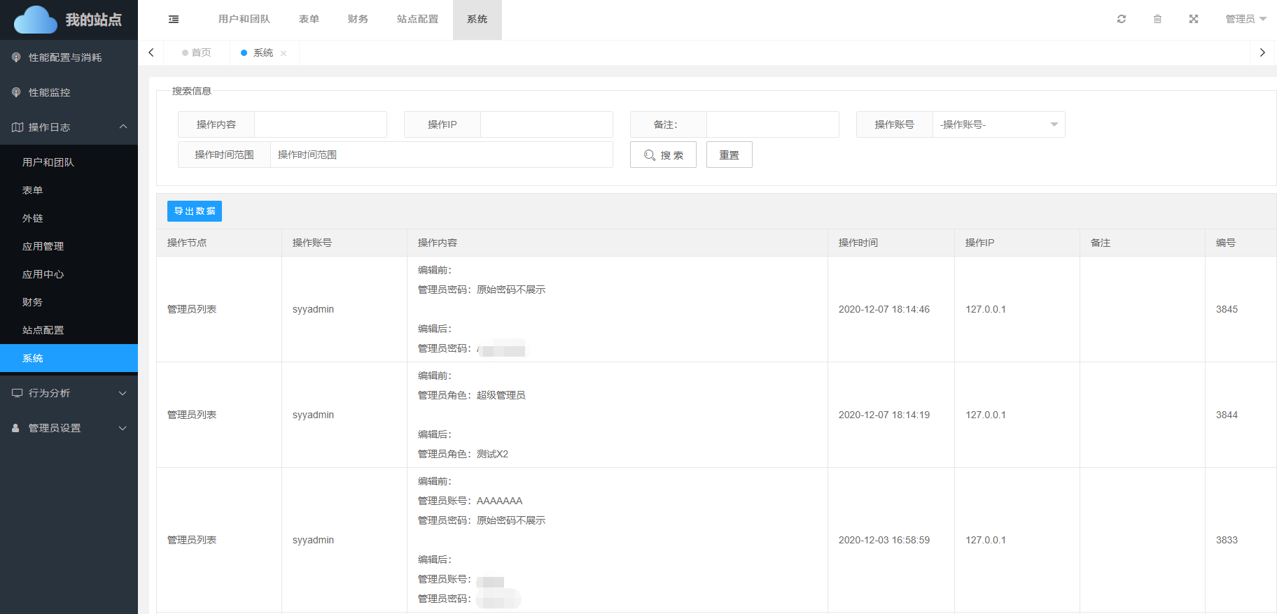 除管理员对系统分类下的操作,如:新增、编辑、删除管理员之外的日志,都是由系统自行产生的。