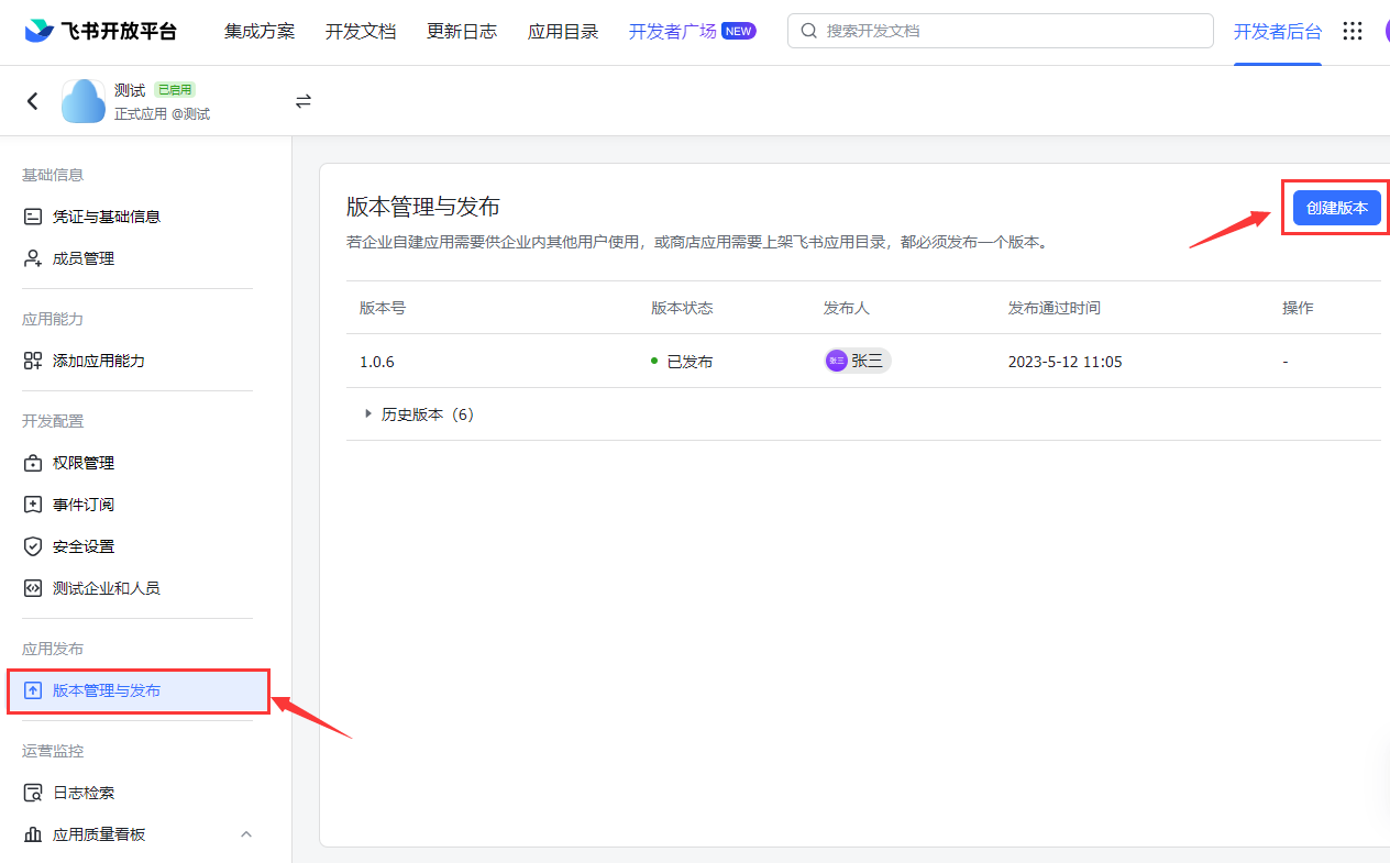 设置权限后需进行一次应用发布和后台安装飞书初始化,不然事件订阅>>请求地址配置时会验证不通过