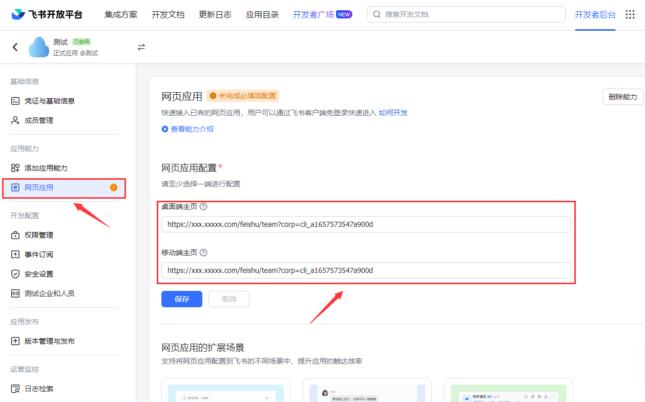 除此之外,还需要在【站点配置】->【第三方配置】->【飞书应用配置】中正确填写绑定参数。