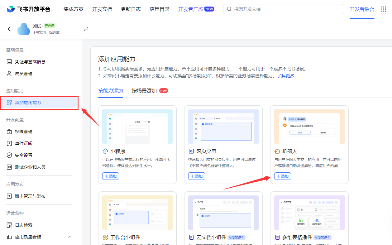 平台的飞书应用绑定采用了飞书【企业自建应用】的模式对接,使用该模式对接,可以获取更多的能力。