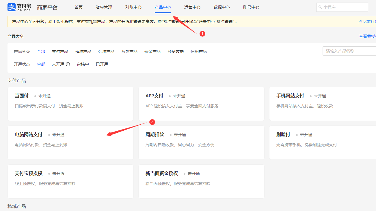 私有云配置支付宝支付后用户可在账户中心使用支付宝进行云币充值,支付宝更新比较频繁,如发现图片等步骤和支付宝平台不一致,请以支付宝平台为准。