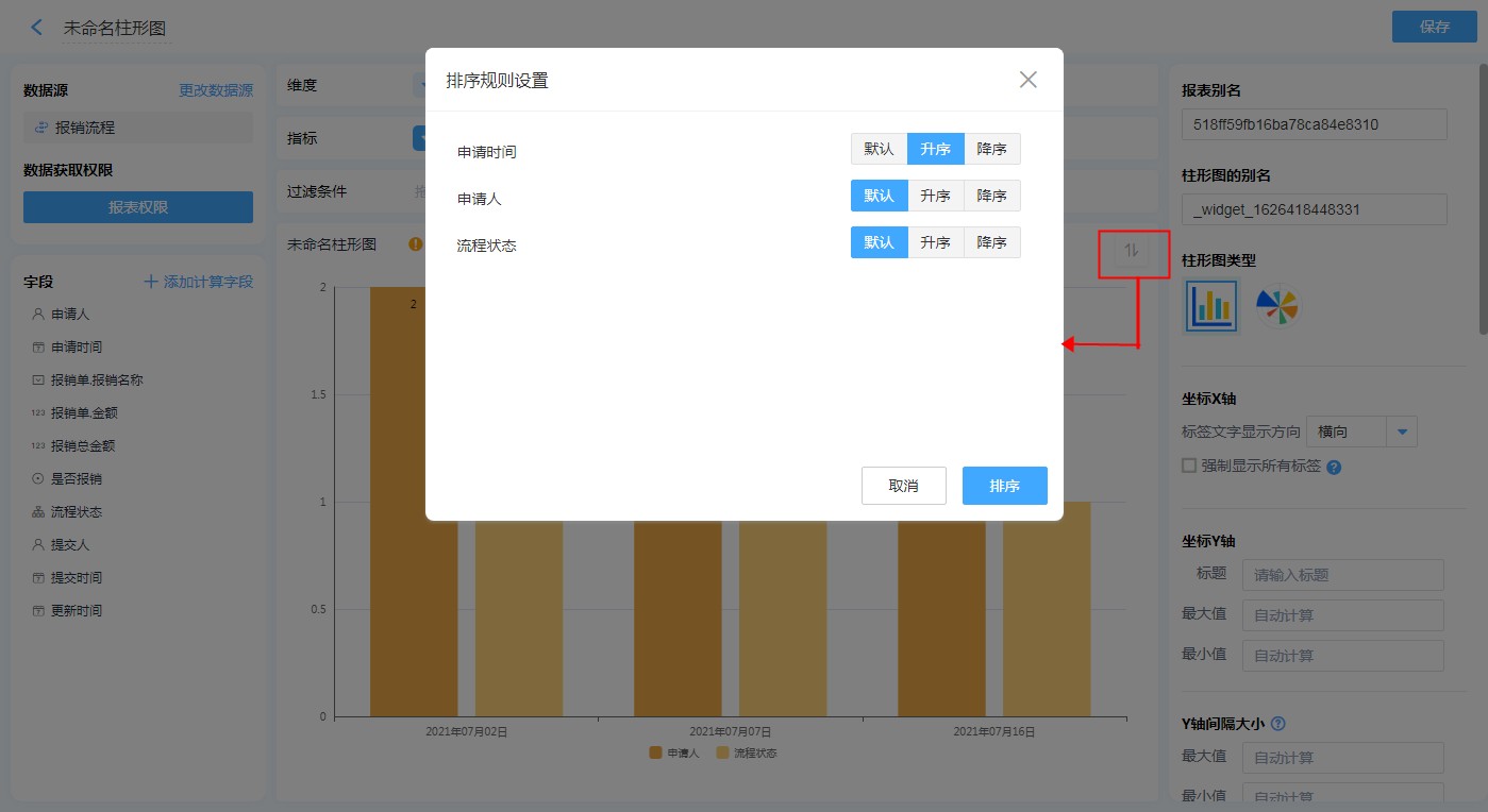 在报表使用过程中,为了方便数据的查看与管理,往往需要对报表中的图表数据进行排序。