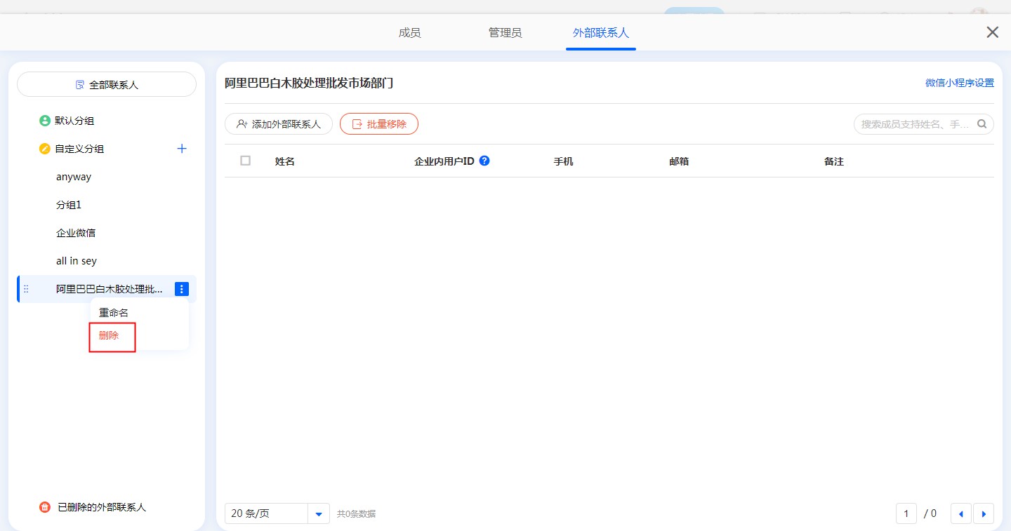 分组类似于内部组织架构中的部门,便于管理外部联系人。