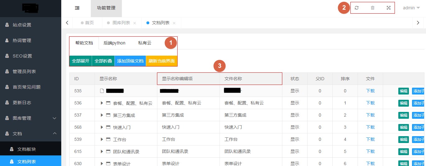 ③ 显示名称编辑项:点击即可编辑文档目录标题。
