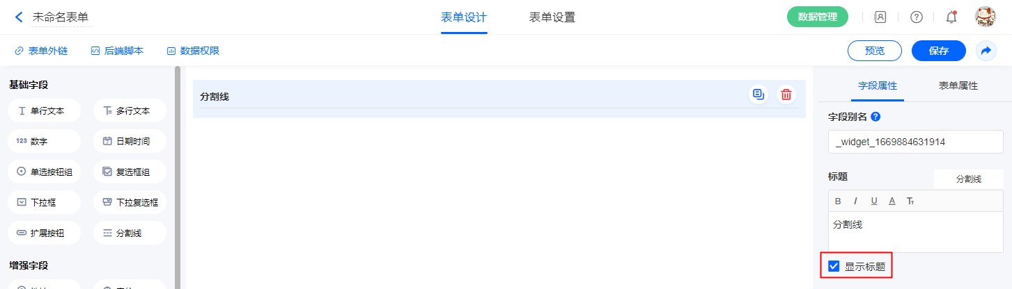 分割线支持配色和标题颜色,可根据表单风格自行设计。