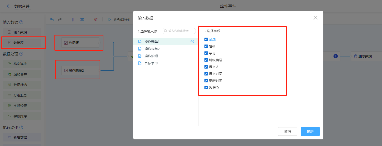 数据源,依次挑选主表与副表中所有需要进行合并的字段