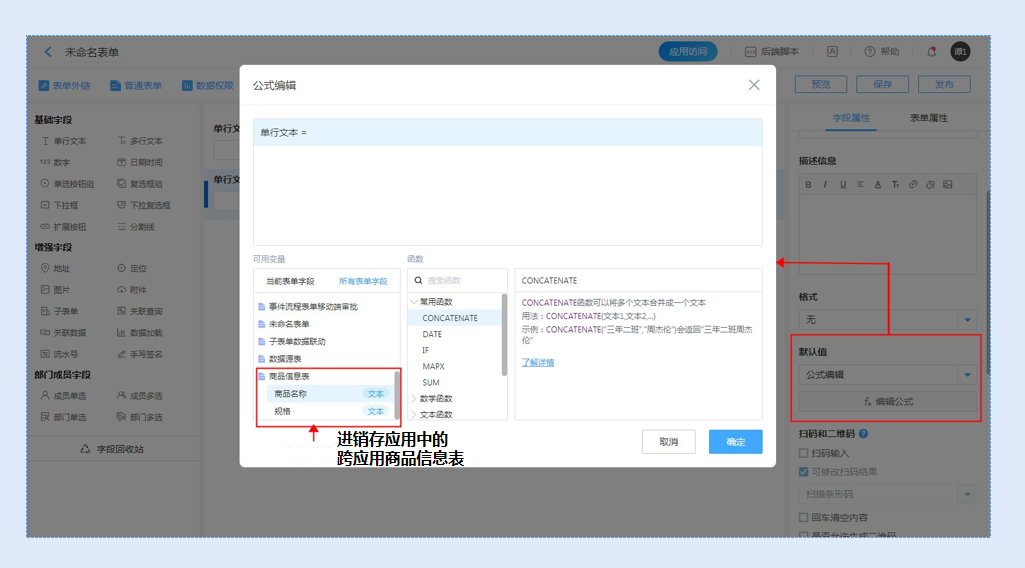 通过跨应用设置,我们可以在任意应用中调取商品管理应用中的商品详情数据。