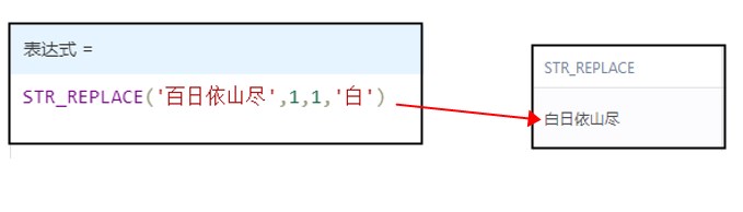 STR_REPLACE(字符串1,2,4,字符串2),即将字符串1中的第2位之后的4位(即2,3,4,5位),用字符串2来替换