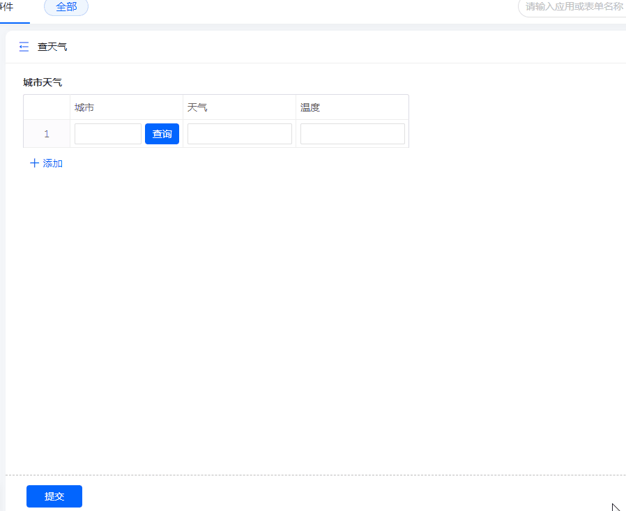 • 返回值设置页面,添加 「城市天气.天气」 (当前行) 、「城市天气.温度」 (当前行) :