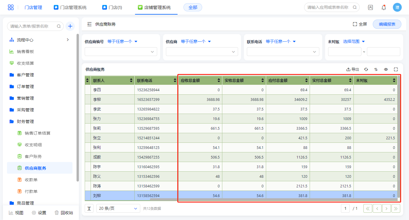 客户/供应商账务报表展示客户/供应商的账务明细,该报表的数据源是聚合表(客户/供应商账务),未对账既指未收或未付金额;