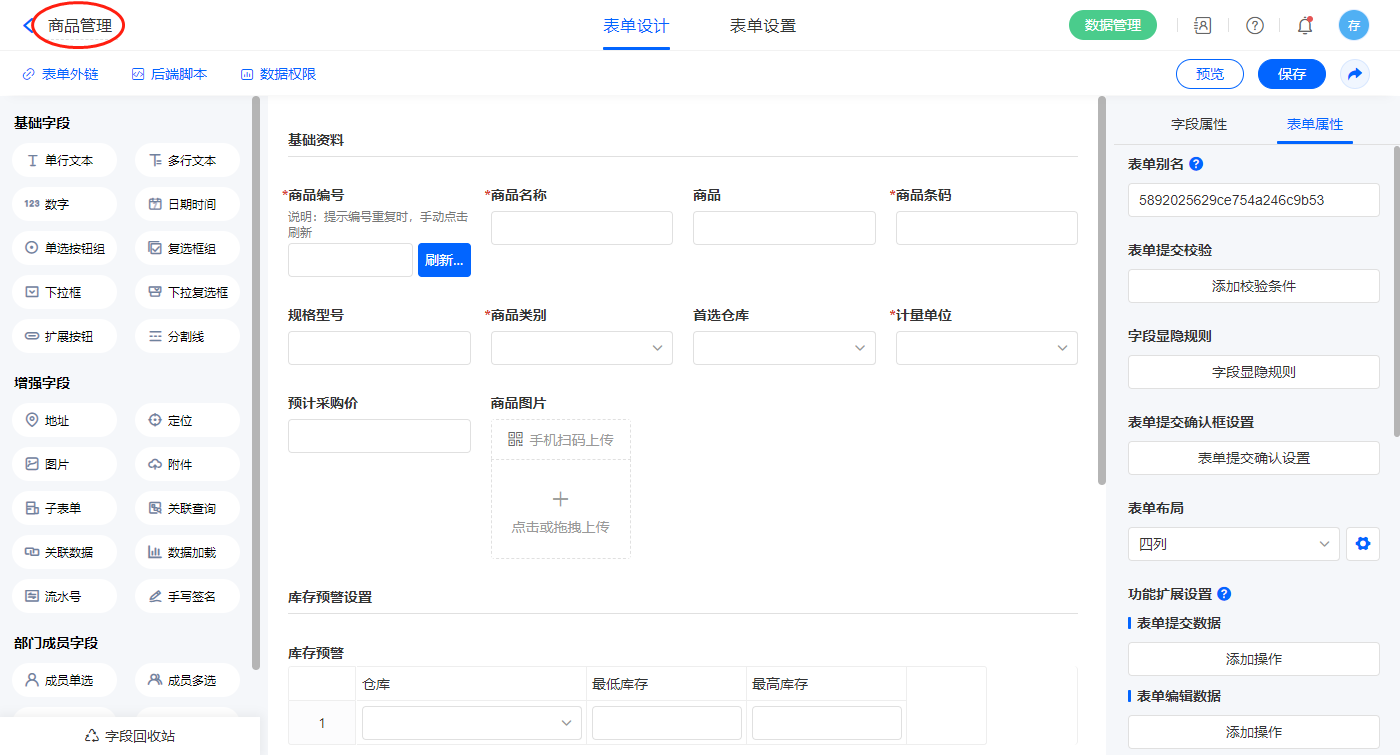2.14、表单【商品管理】字段及表单属性设置