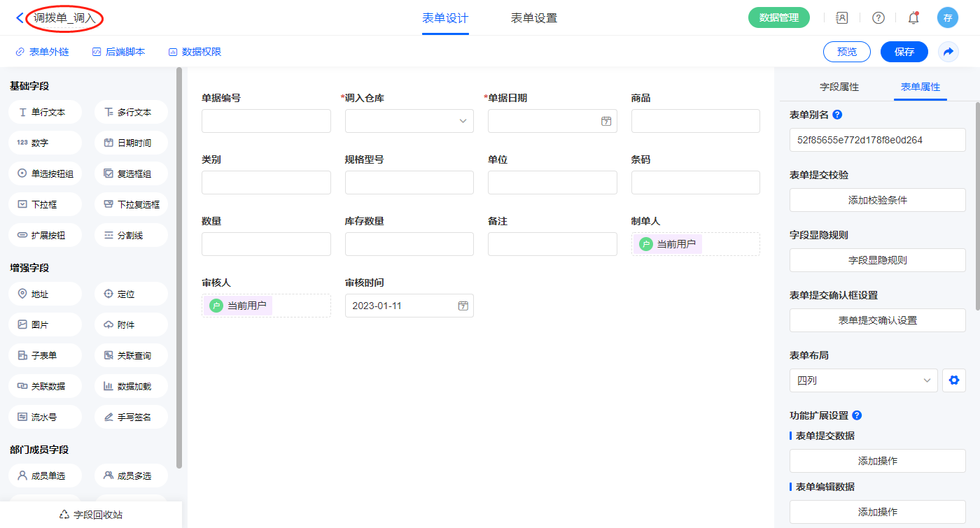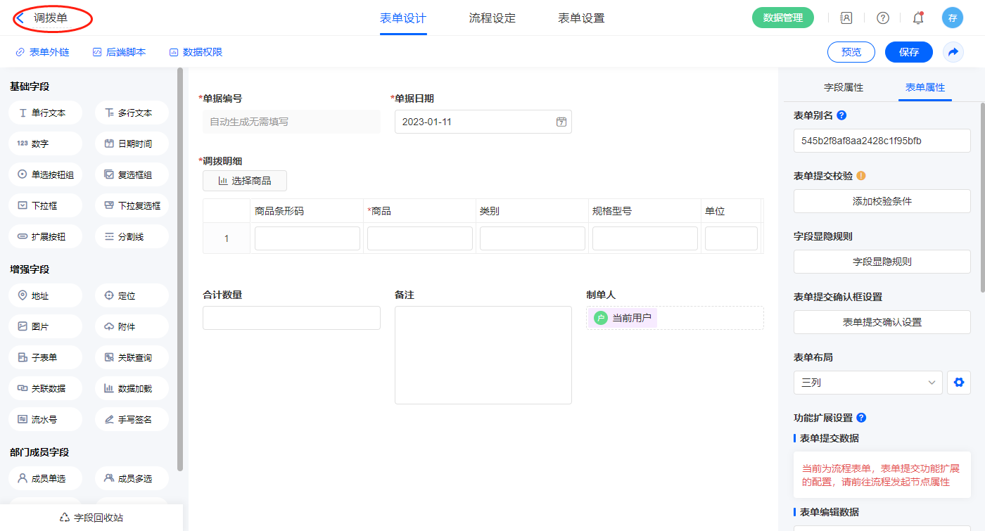 2.10、表单【调拨单】字段及表单属性设置