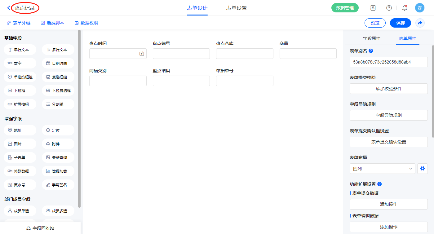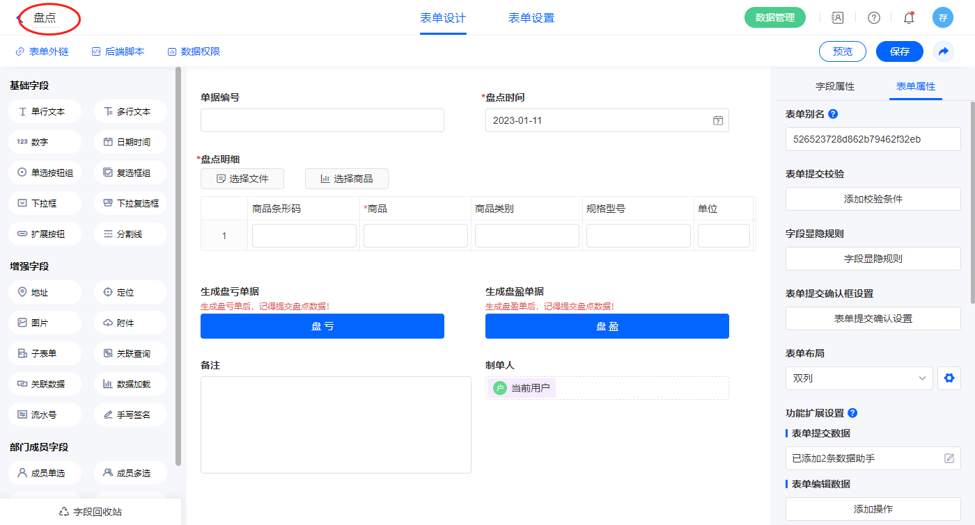2.11、表单【盘点】字段及表单属性设置