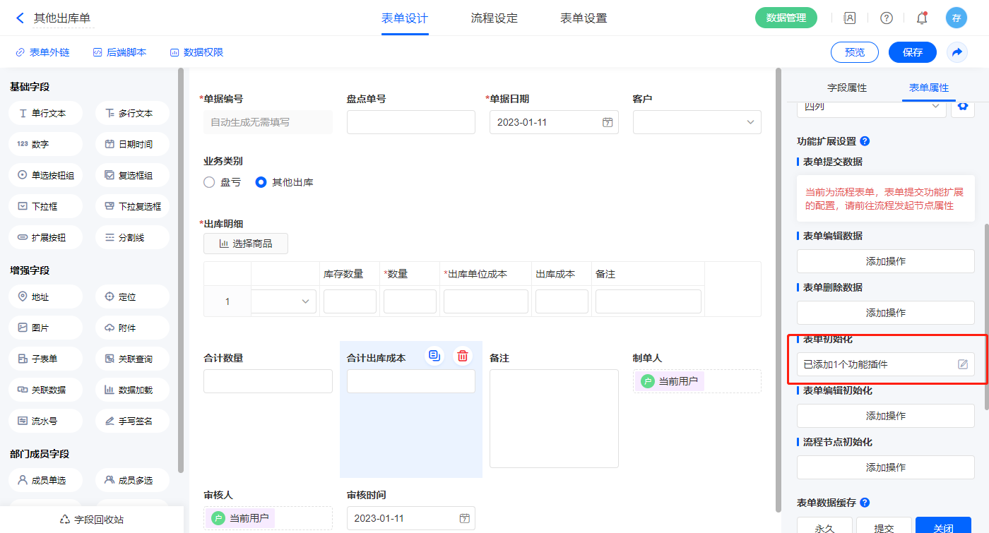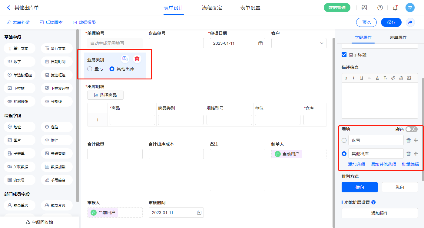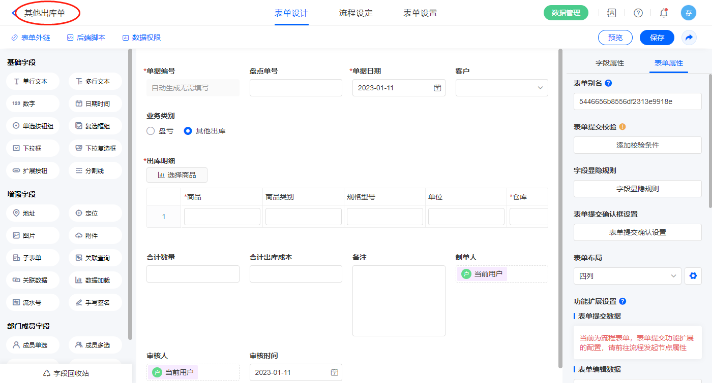 2.13、表单【其他出库单】字段及表单属性设置