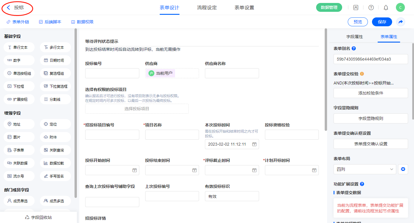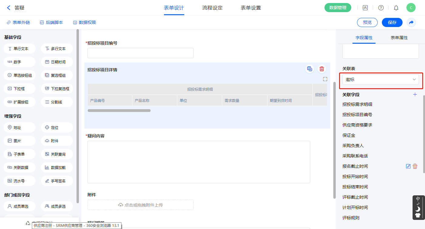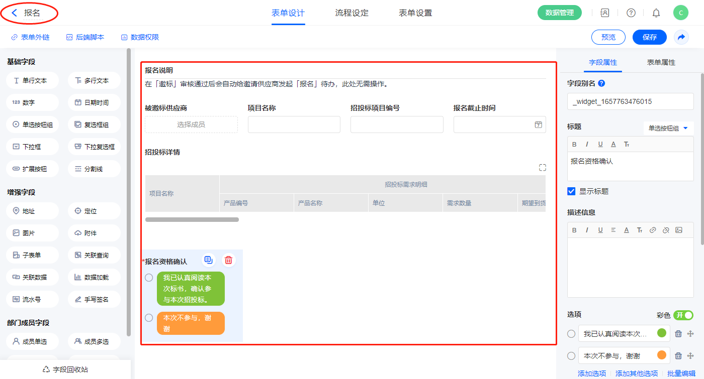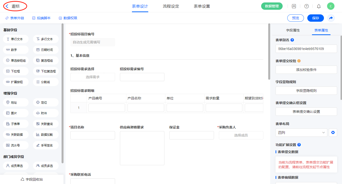 2.5、表单【邀标】字段及表单属性设置