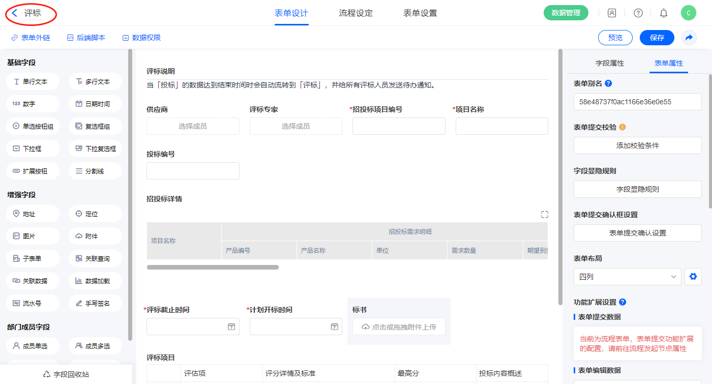 2.8、表单【评标】字段及表单属性设置