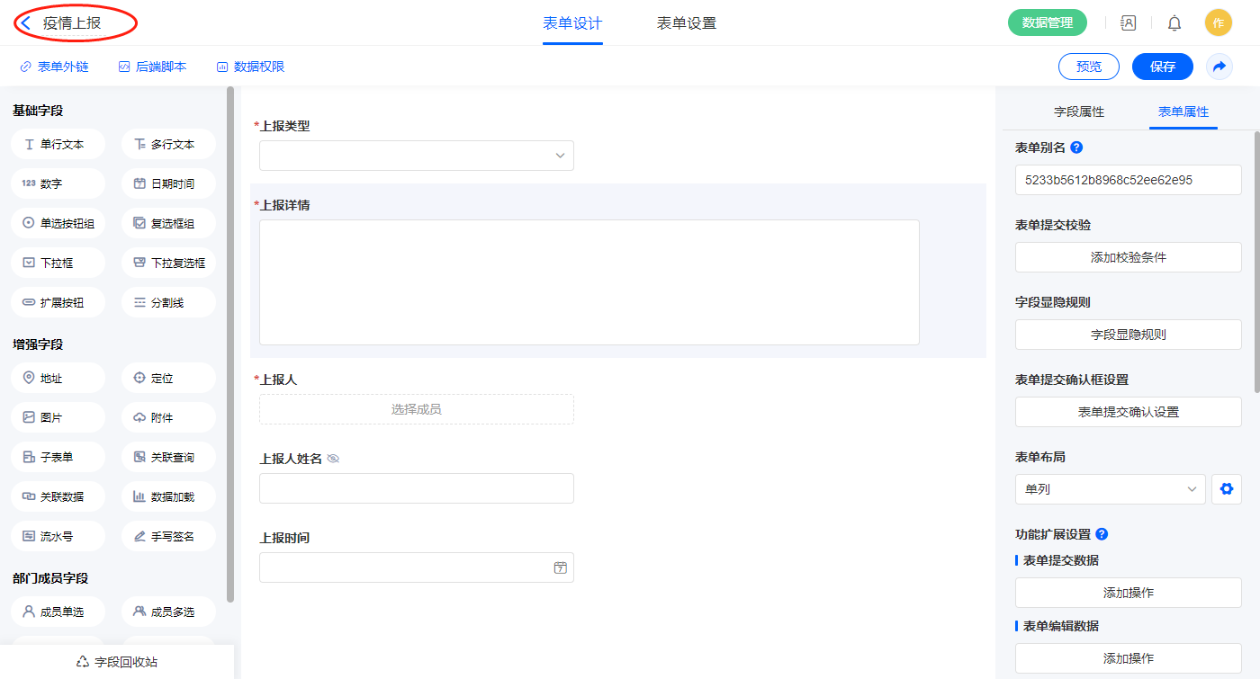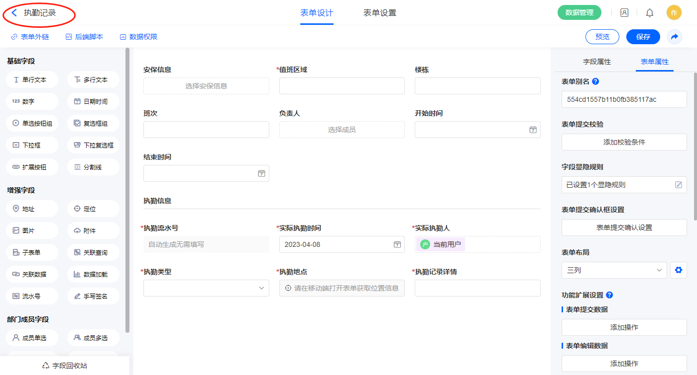 • 2.7、表单【执勤记录】字段及表单属性设置