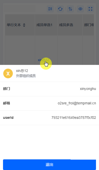 数据管理和报表中,成员部门字段,点击可以查看成员部门详情,功能同电脑端一致。