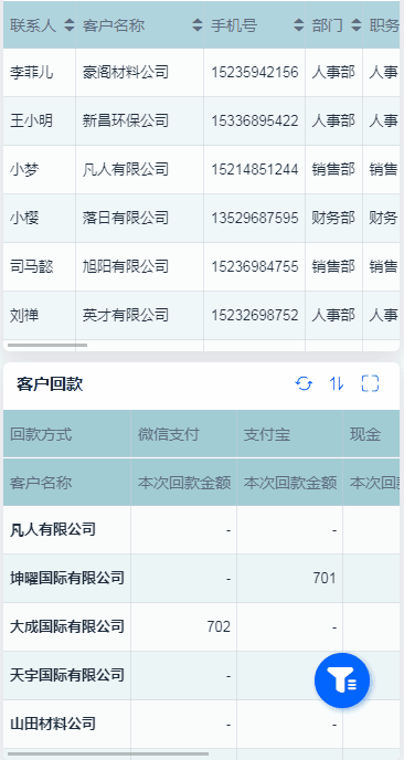注意:需要在数据表设计页开启[表格冻结-移动的固定列]属性,移动端访问数据表时表格才会冻结。