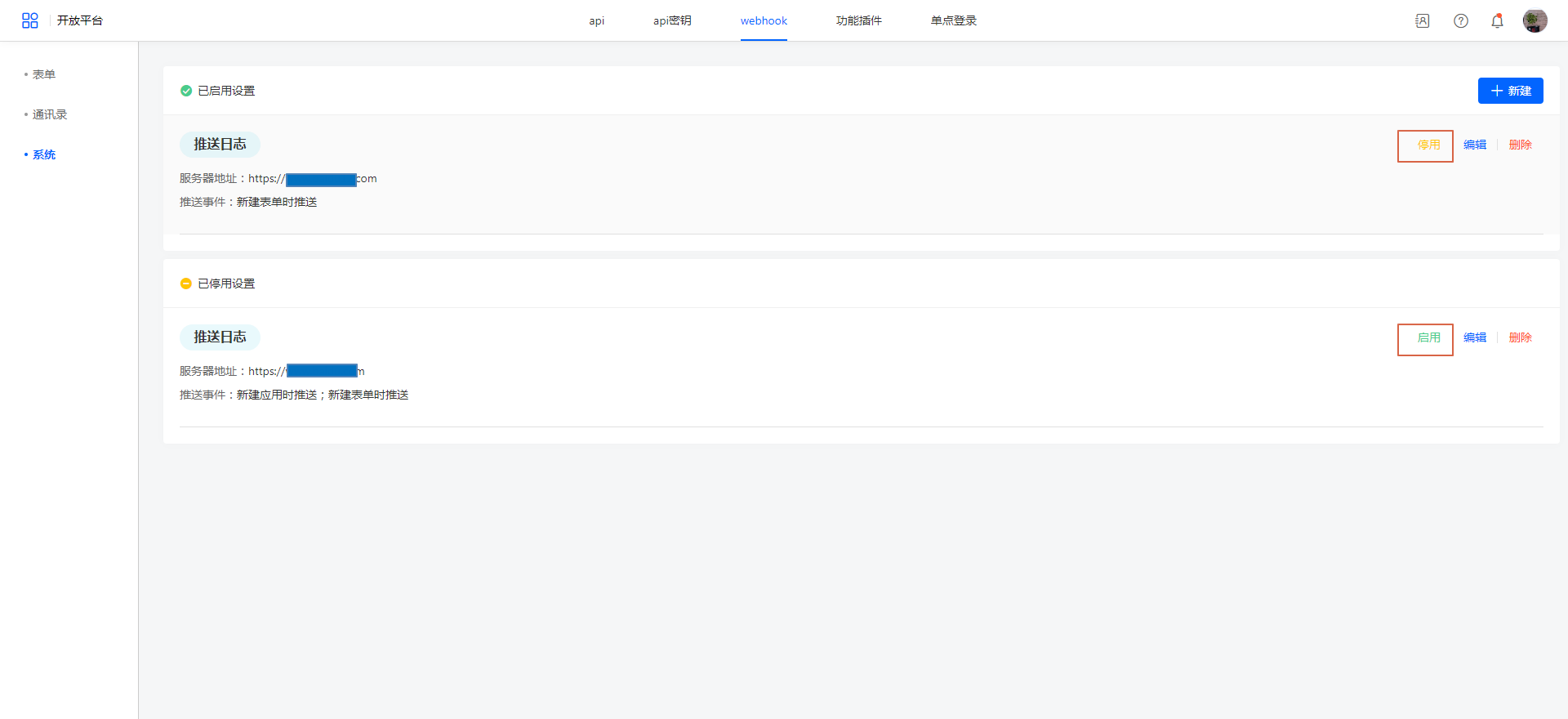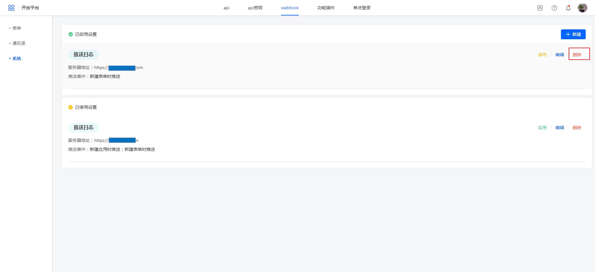 系统webhook管理