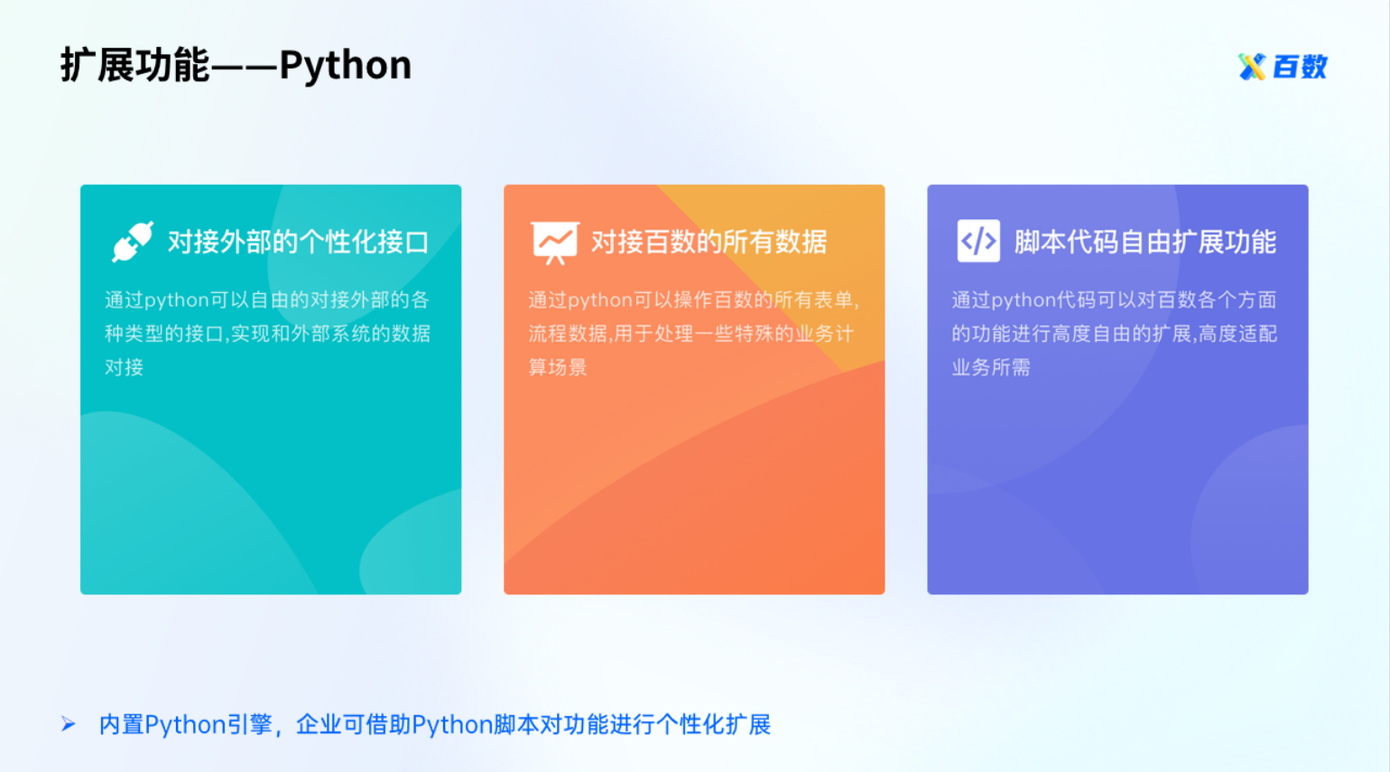 - Python:云翼运维已覆盖目前市面上低代码产品的大多数功能,当用户对产品有特殊需求时可使用Python来实现。