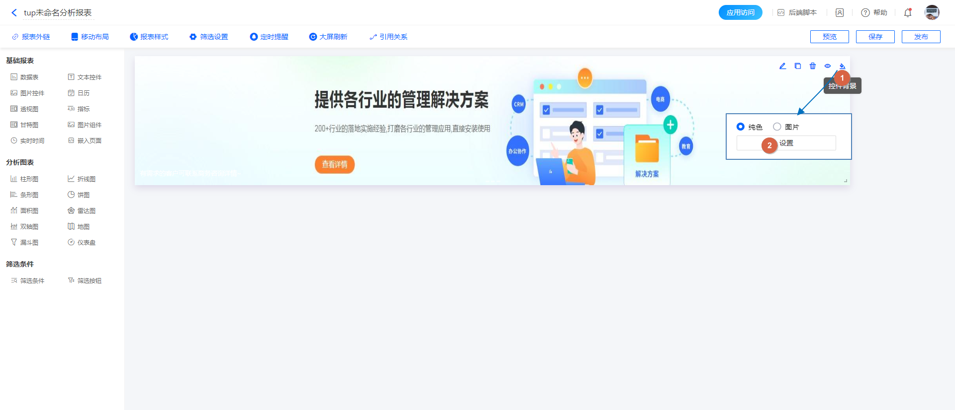 可以添加组件背景,设置纯色背景或者添加背景图片。