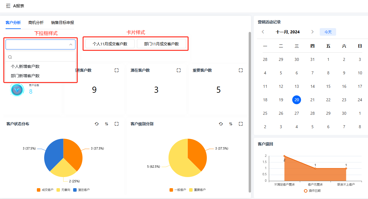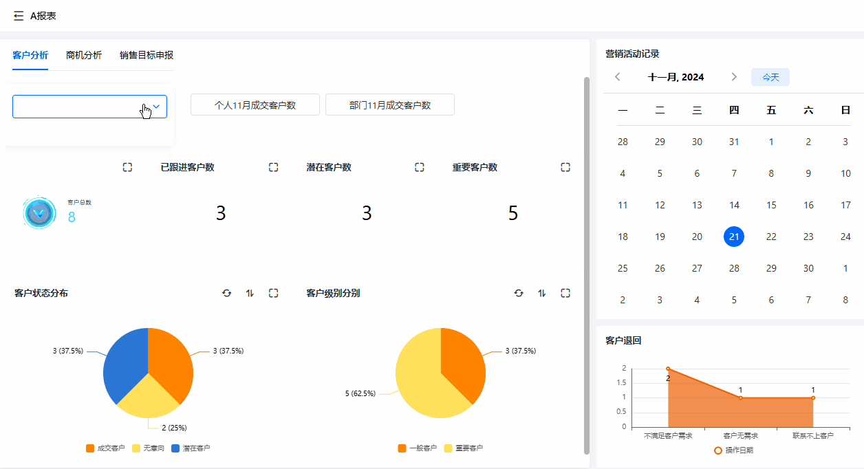 点击具体的选项可设置为默认的筛选项,成员访问仪表盘时,根据设置的默认筛选项展示筛选后的数据: