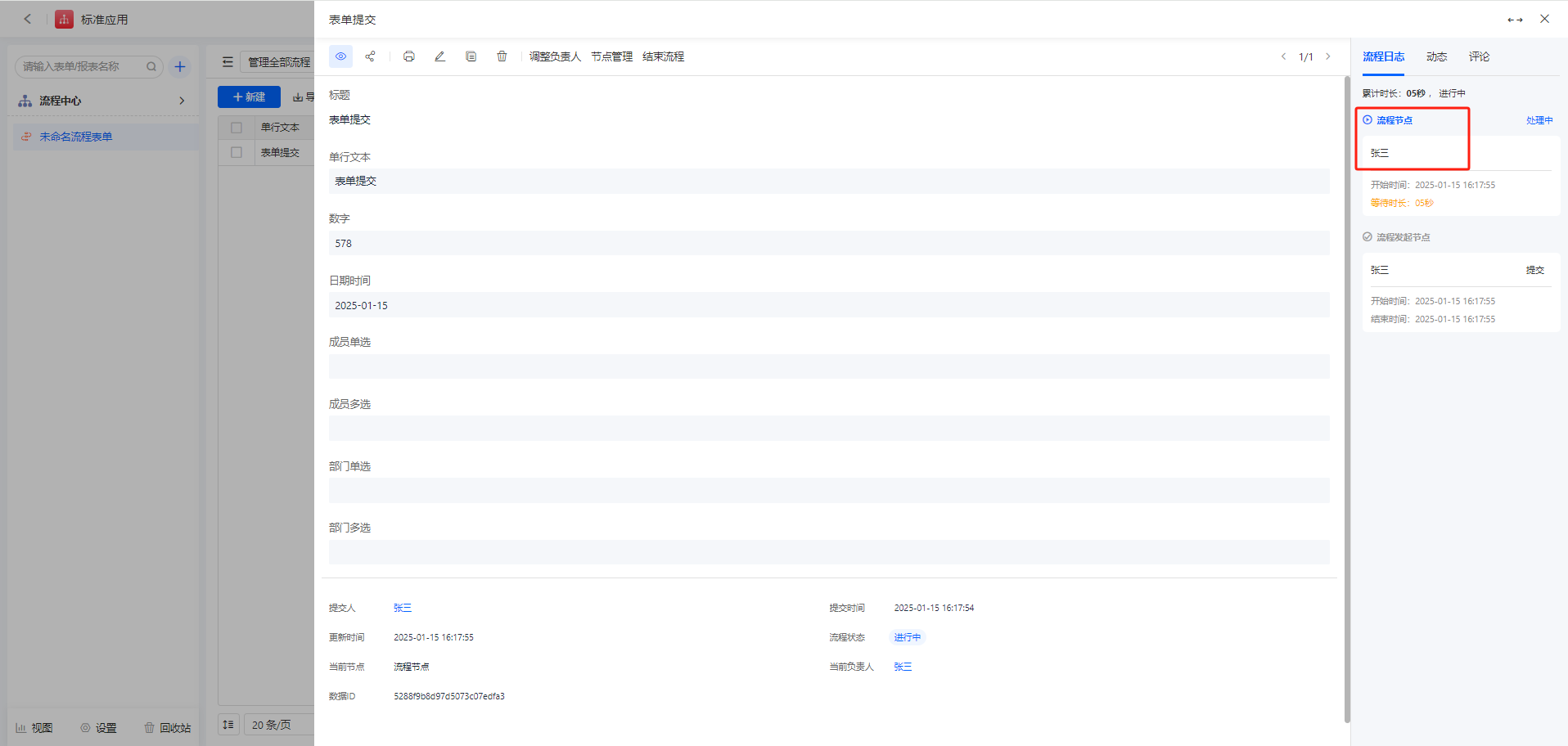 填写表单后进行提交,审批人为 选择的虚拟通讯录对应的真实人员(例如:张三) 进行审批。如下图所示:
