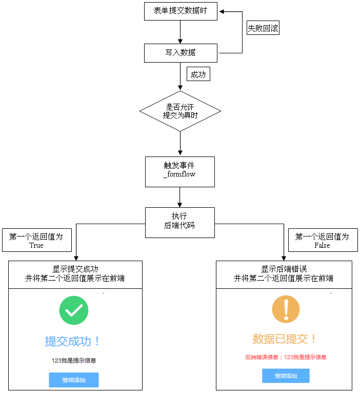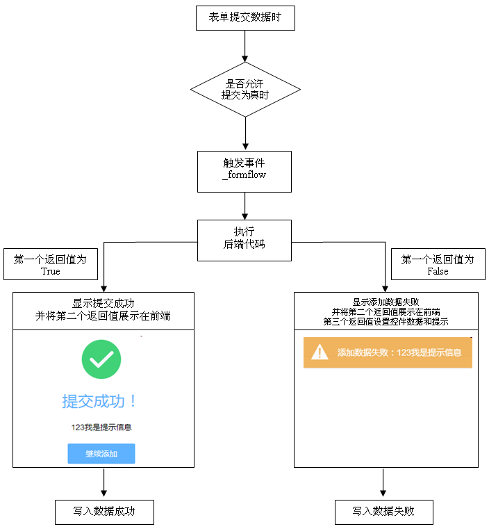 后置返回 True:通过流程操作 前端展示文本信息,为空无提示 参数无效