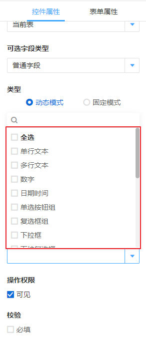 • 动态模式 指添加字段时是动态选择当前表单的字段