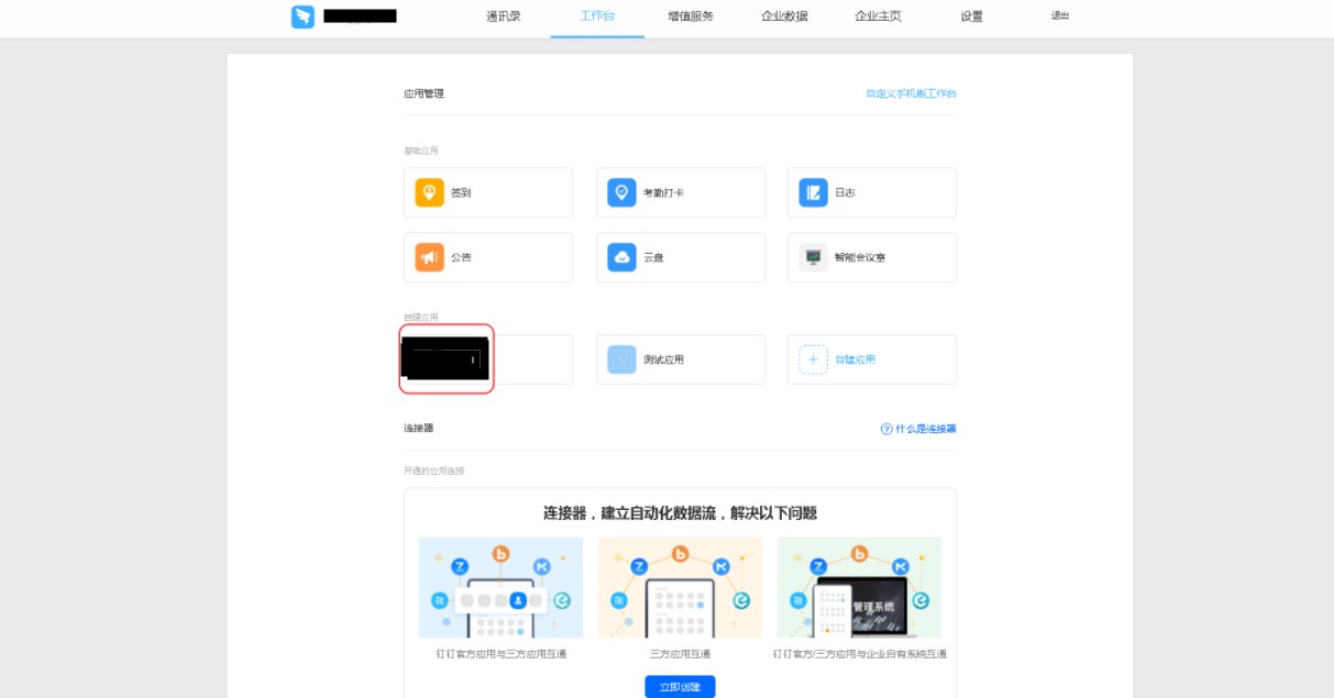 平台还提供了直接在钉钉应用内直接访问平台的能力。