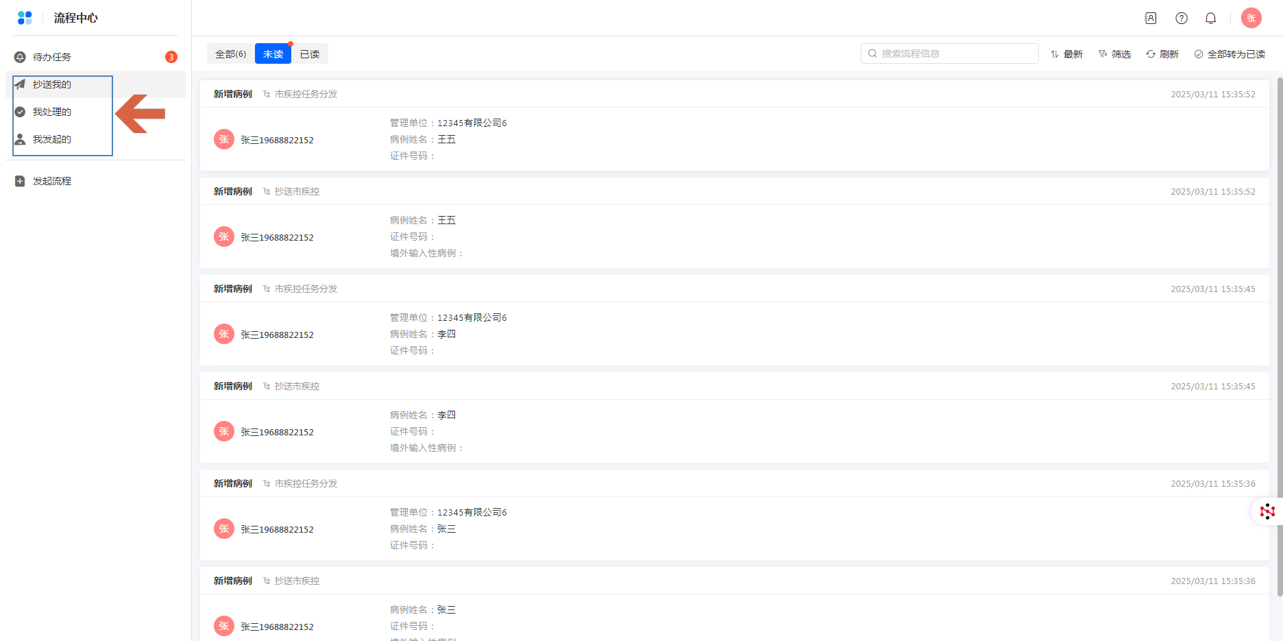 全部转为已读:抄送我的下,全部转为已读功能,指将可见的未读抄送转为已读。