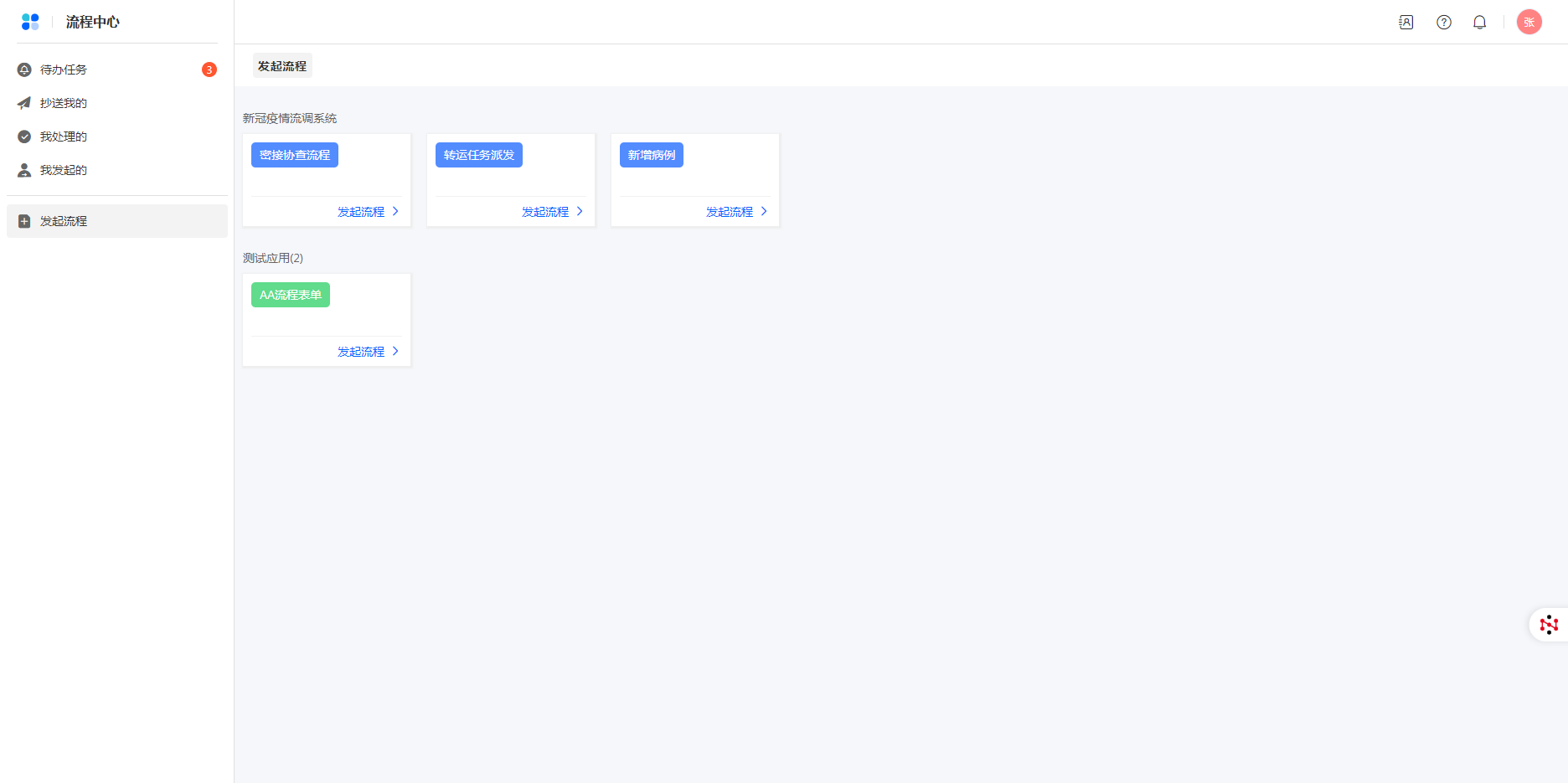 展示系统中所有的流程,选择指定流程,点击发起流程可以直接发起流程。