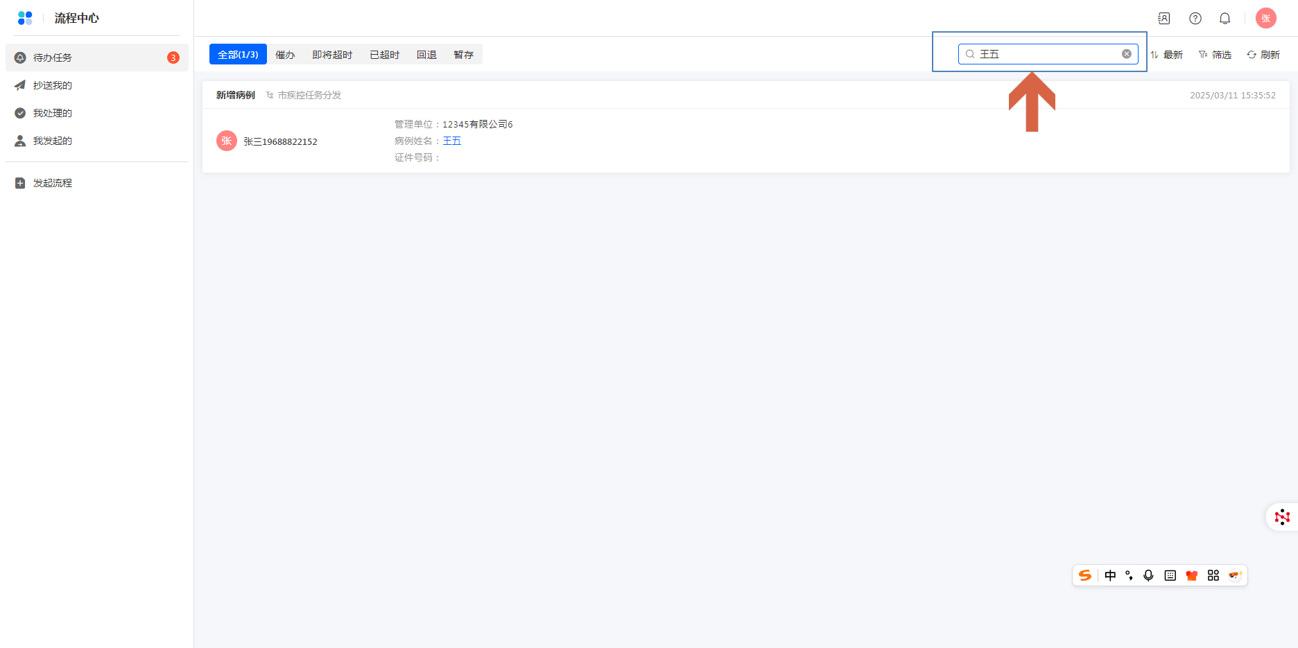 • 待办任务/抄送我的/我处理的/我发起的下,均支持快捷搜索和关键字搜索;快捷搜索和关键字搜索支持组合使用。