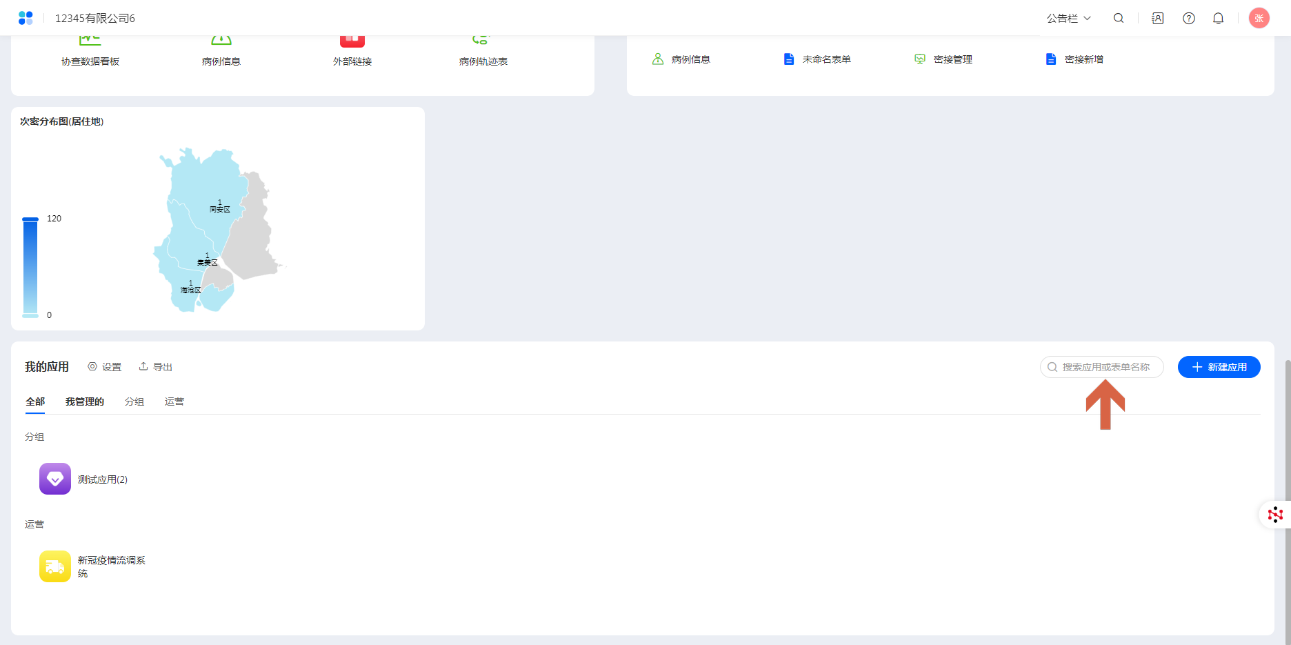 - 入口二:我的应用 右侧搜索框搜索
