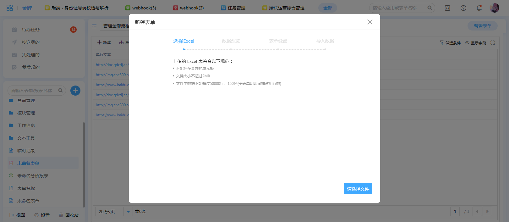系统除了可以直接创建表单外,还可以导入本地excel文件创建表单。