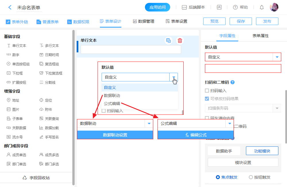 公式编辑 即单行文本的值是由公式来自动计算出的。