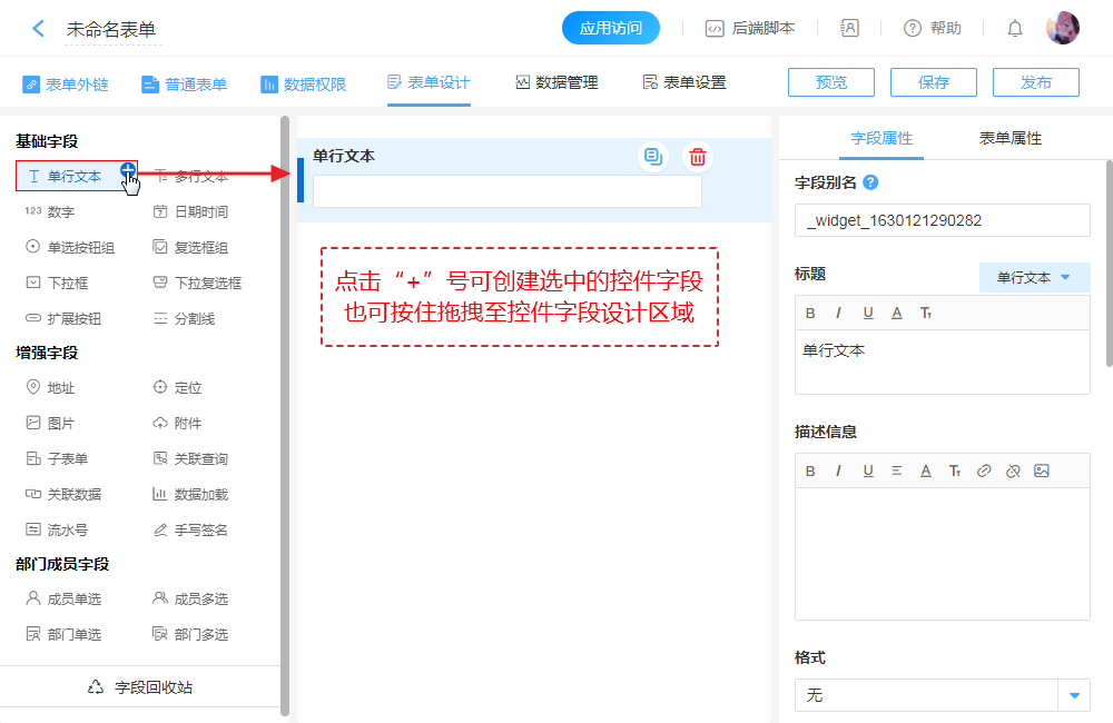 在“单行文本”控件中,系统预设的数据格式,起到控件校验的作用。
