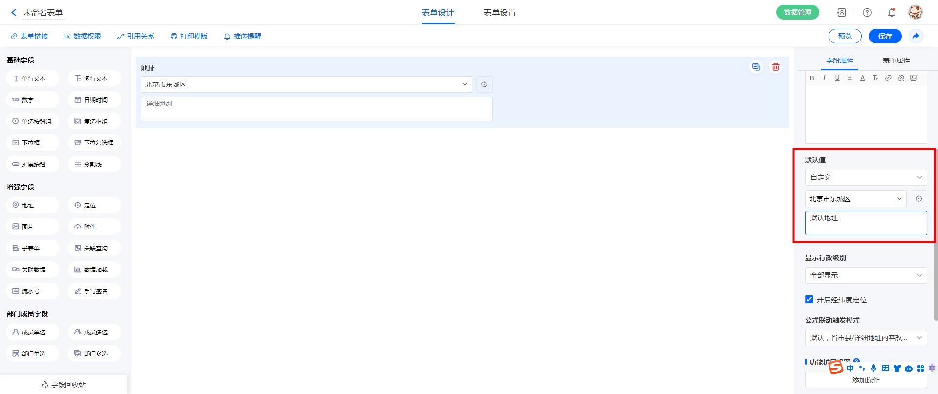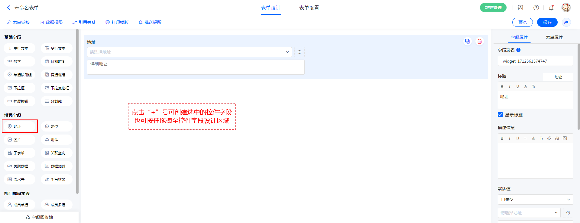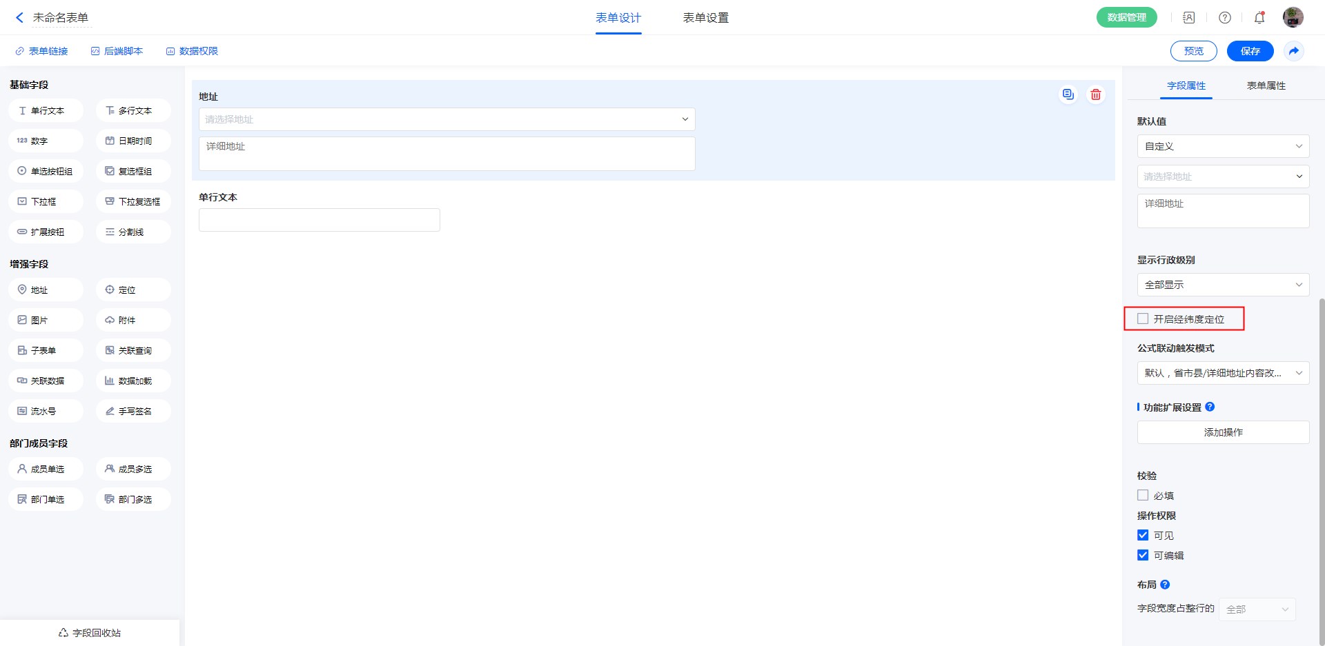 设置入口:表单设计-地址字段-【开启经纬度定位】