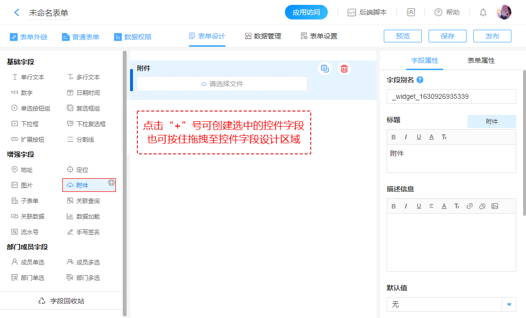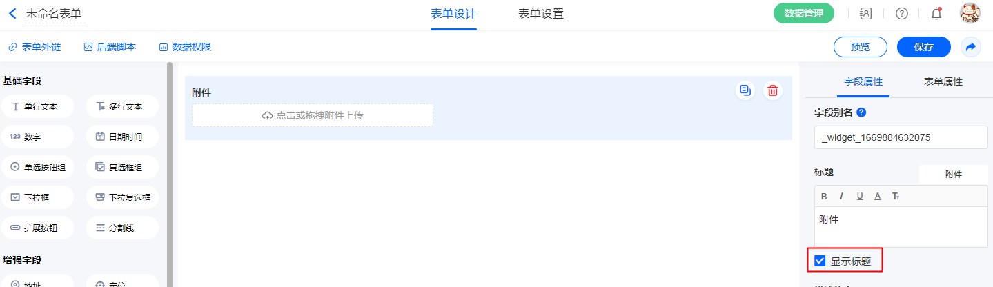 “附件”专门用于表单中上传文件的场景。