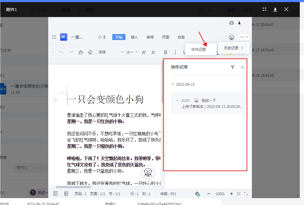 勾选后,在预览附件时可以查看协作记录。