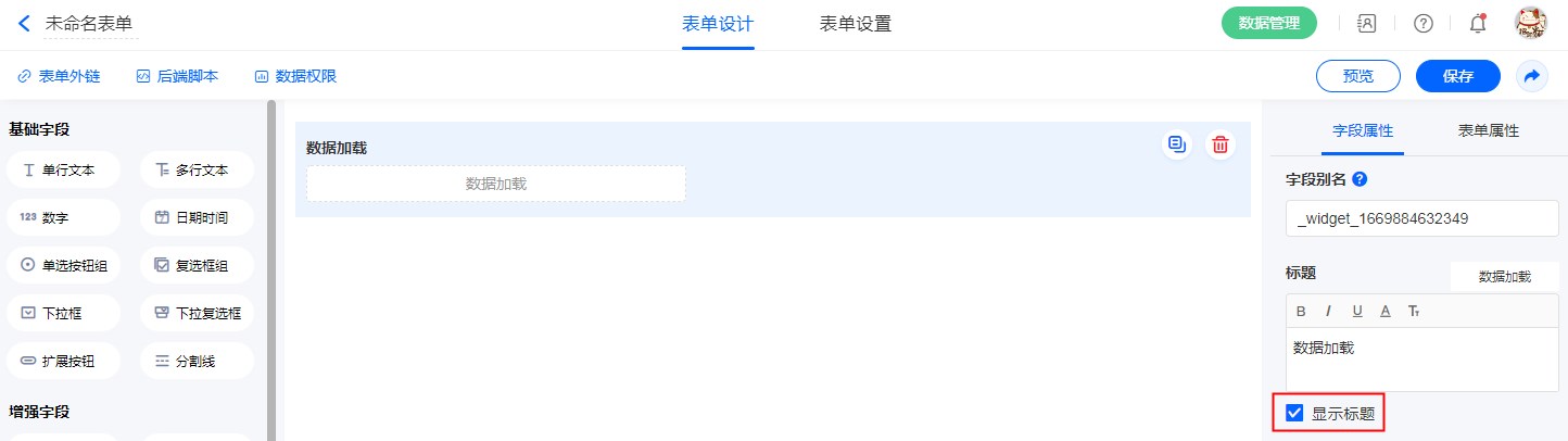 数据加载可以将其他表单的数据提取到当前表单,同时支持将关联表单数据填充到当前表单的控件。