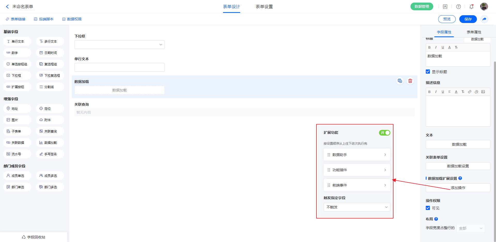 设置入口:表单设计—数据加载—数据加载扩展设置