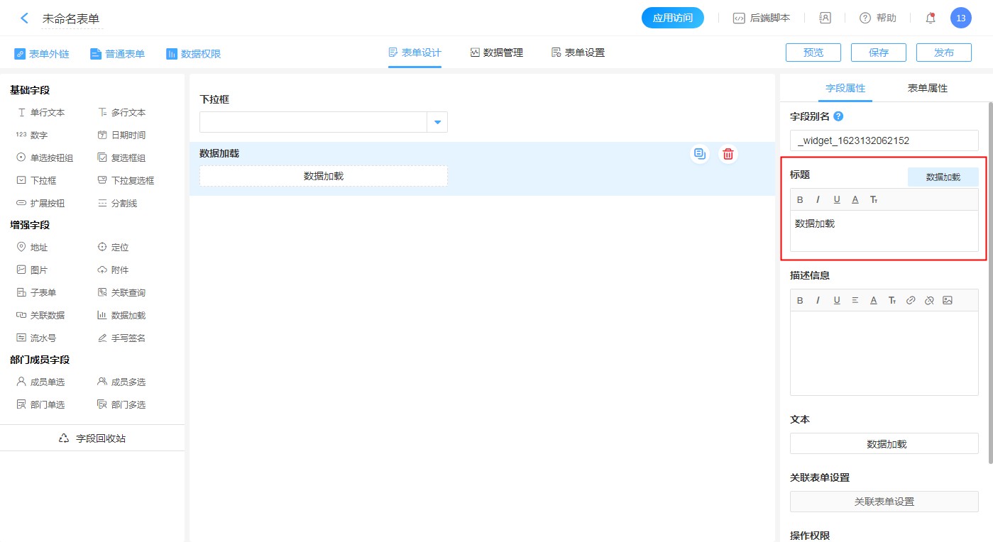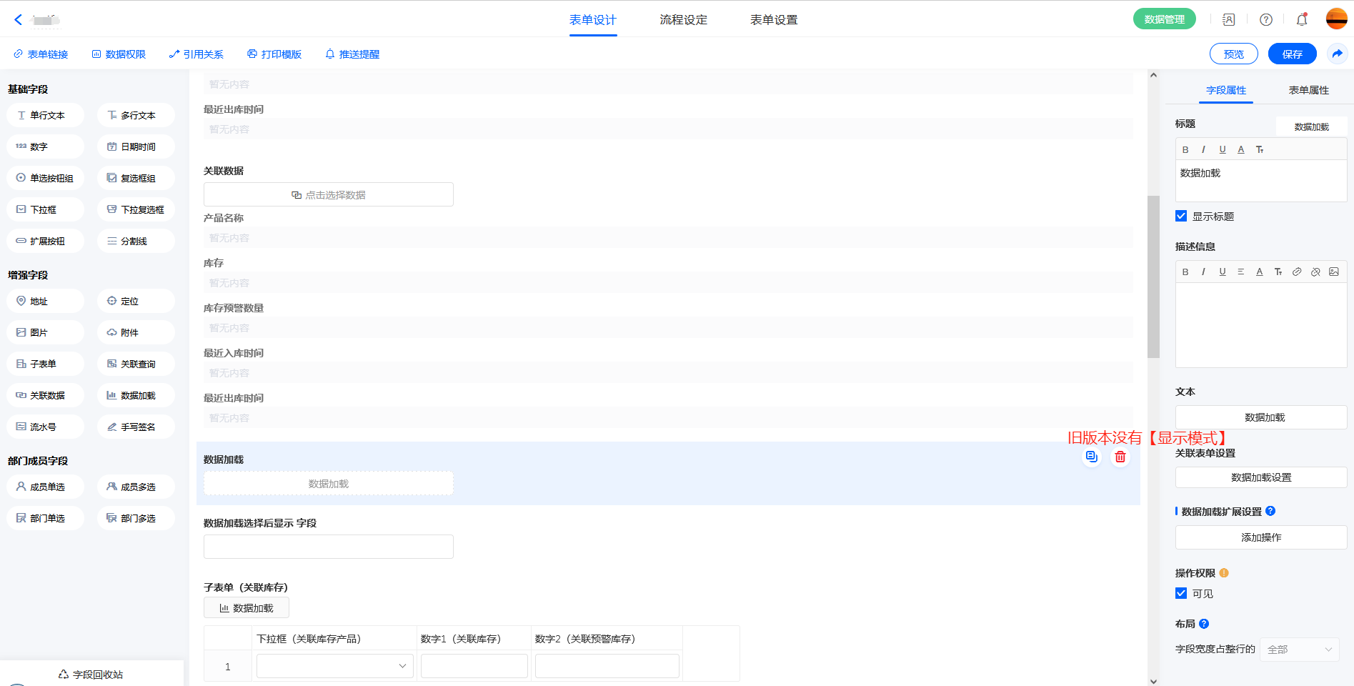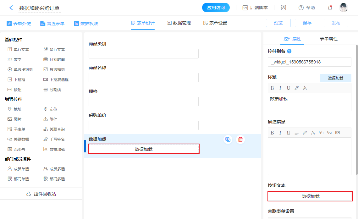 可用于如关联产品信息,关联业务数据等场景。一个数据加载控件仅能关联一个表单。
