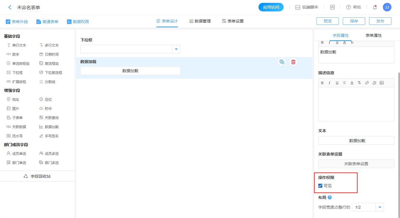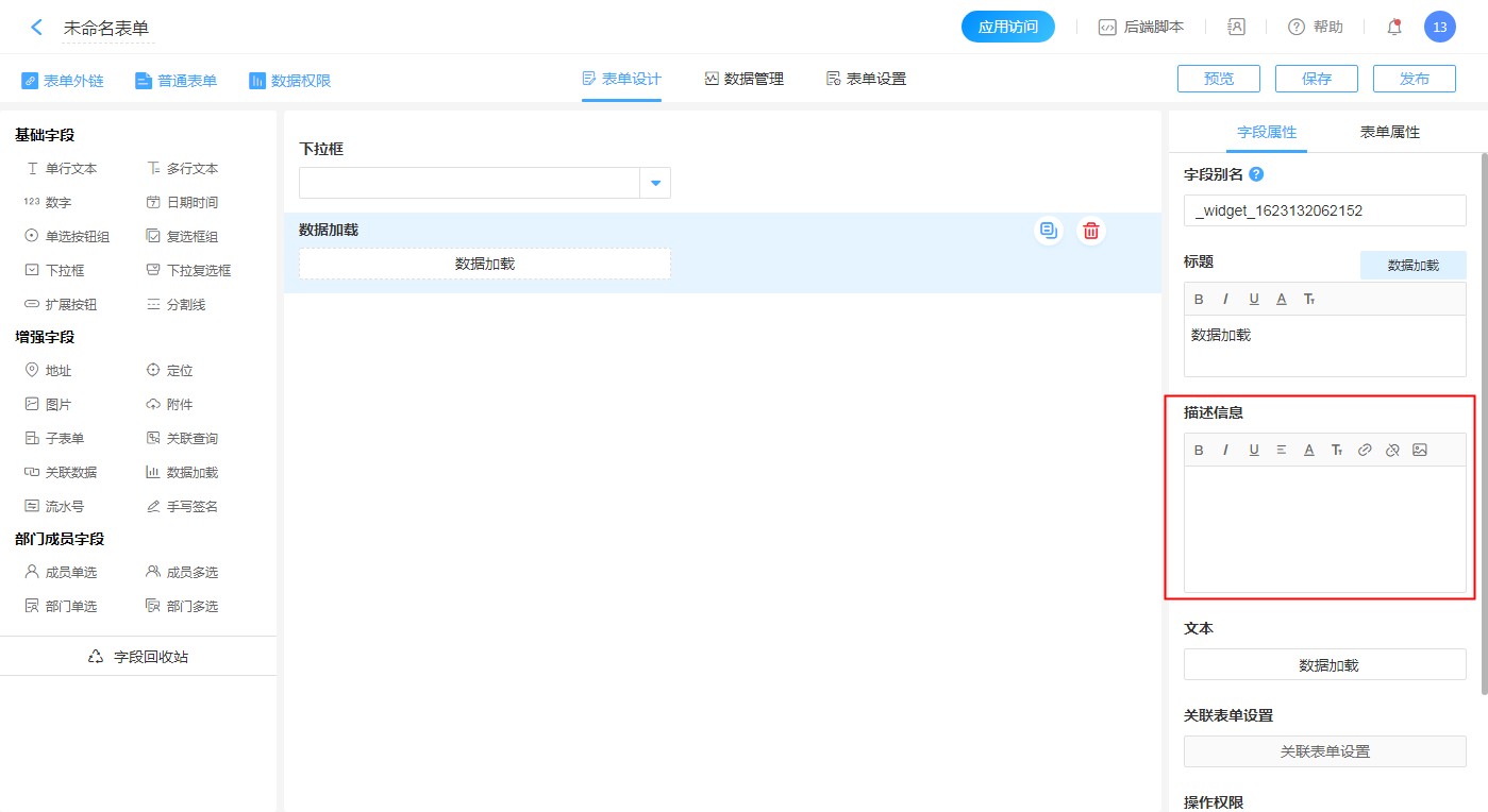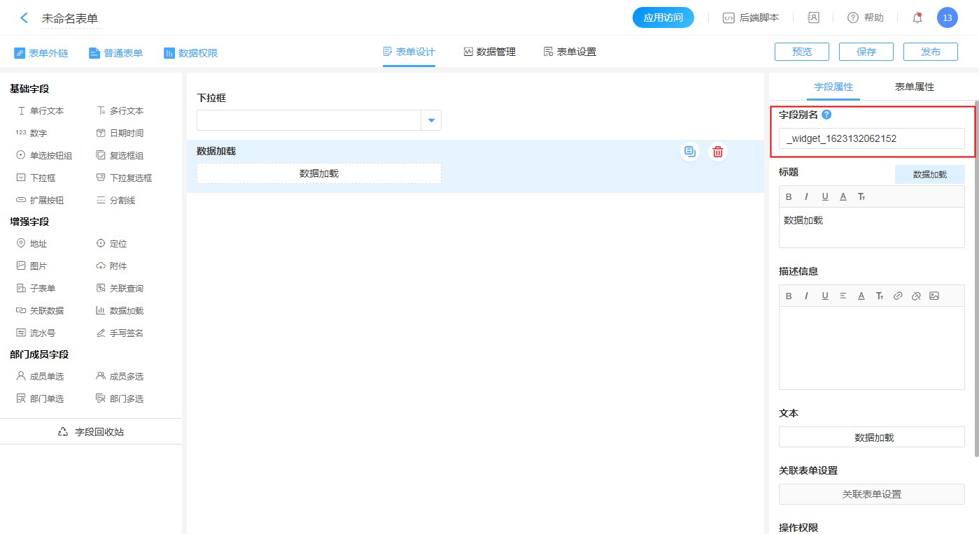 可用于如关联产品信息,关联业务数据等场景。一个数据加载控件仅能关联一个表单。