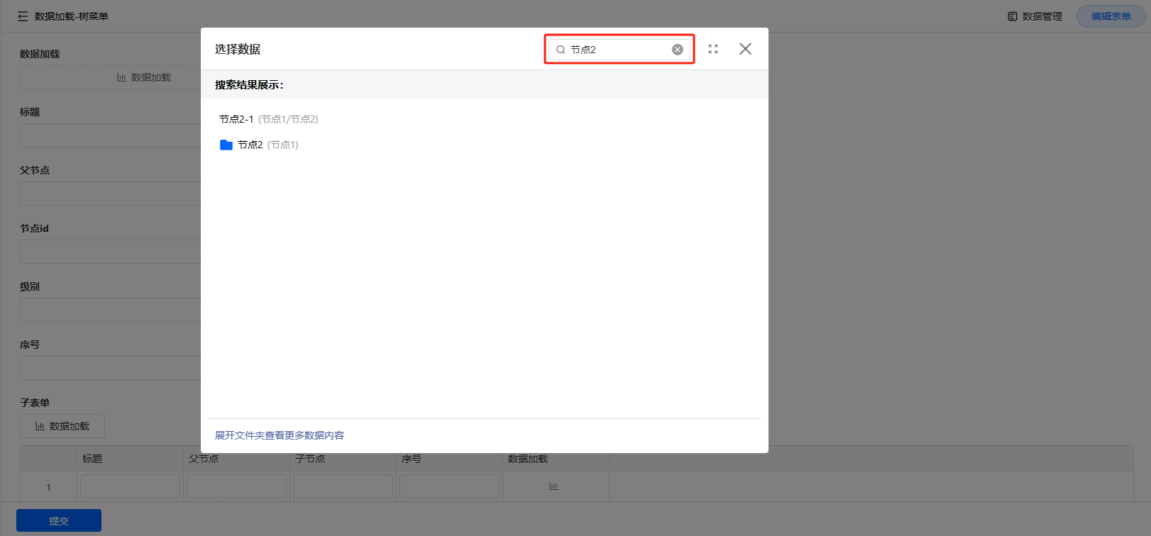 树菜单支持根据“标题”进行模糊搜索,快速筛选所需数据。