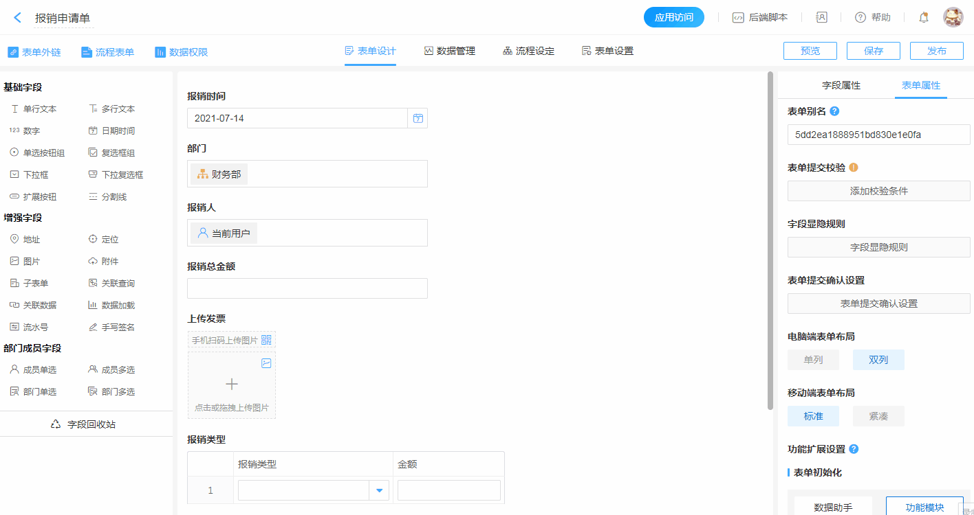 流程表单的预定义数据权限包括管理全部流程、查看全部流程,预定义权限组只需添加成员即可权限生效。