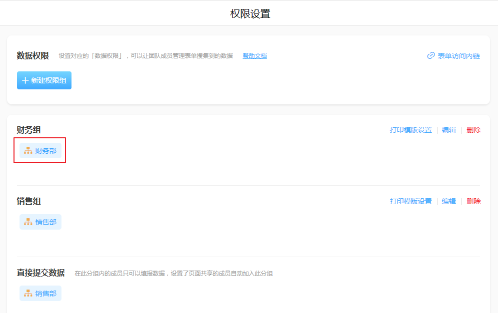 ② 权限配置完成后,共享给财务部成员,操作方法与【销售部】的一致。