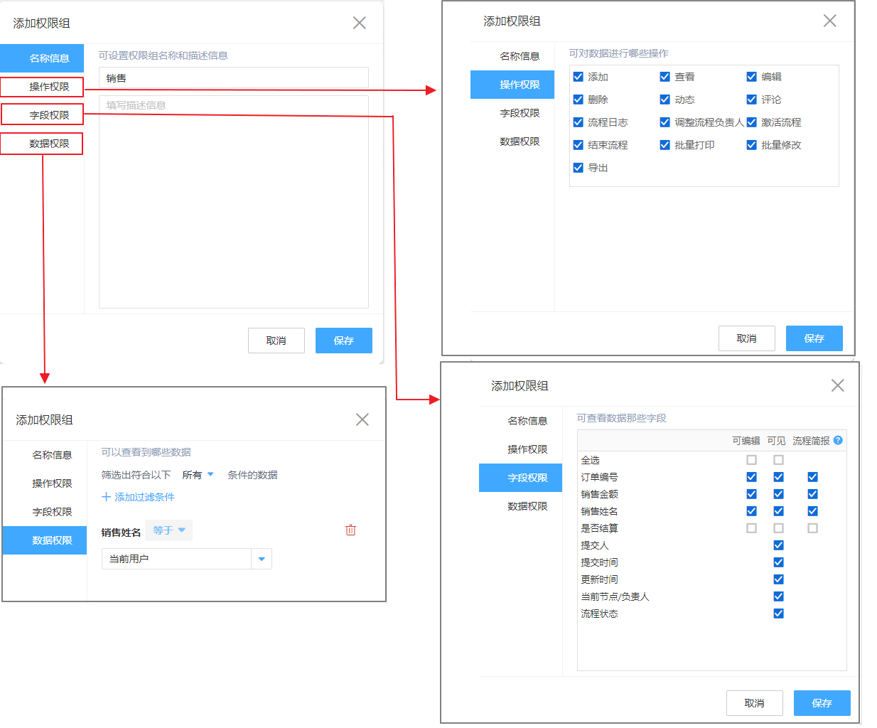 • 对所有字段都可见,但只能编辑【订单编号】【销售姓名】【销售金额】。